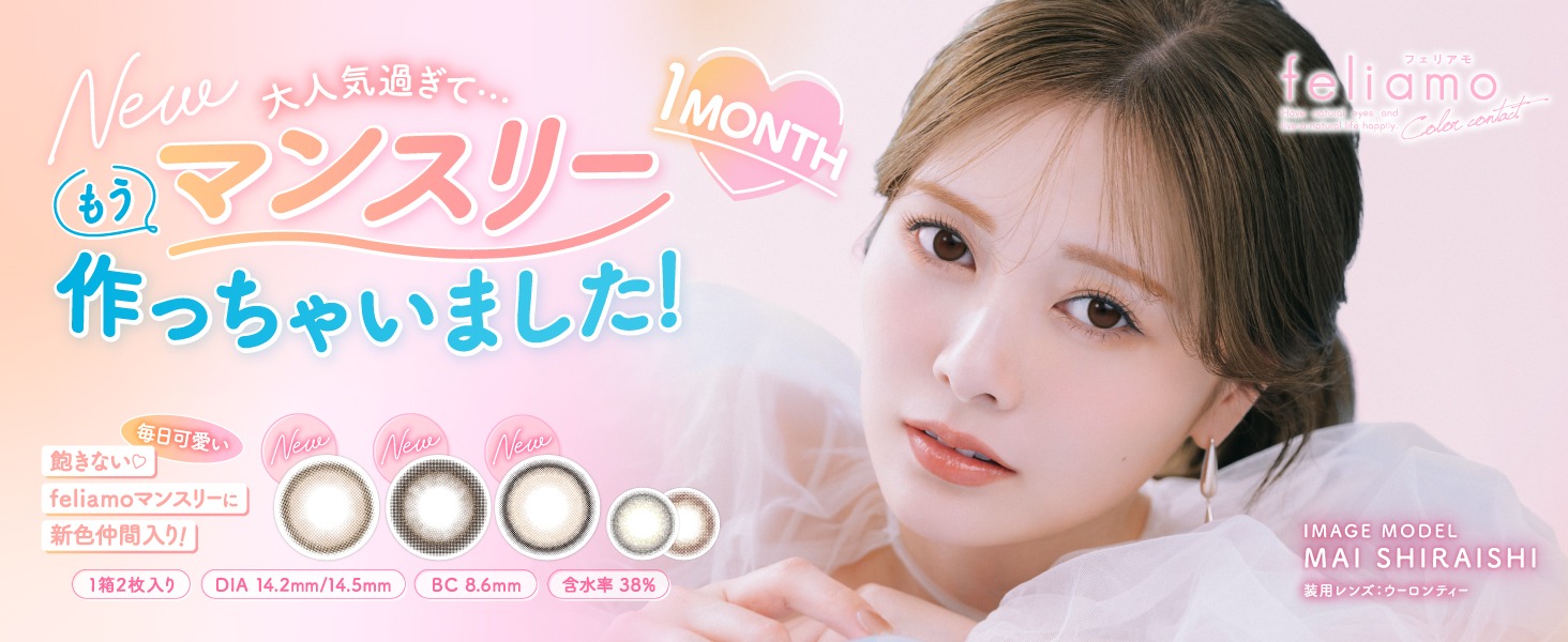 - [1箱入数]2枚 [BC]8.6mm [使用期間]終日装用、1ヶ月交換 ( マンスリー ) [含水率]38% [DI14.2mm/14.5mm [承認番号]22400BZX00278000