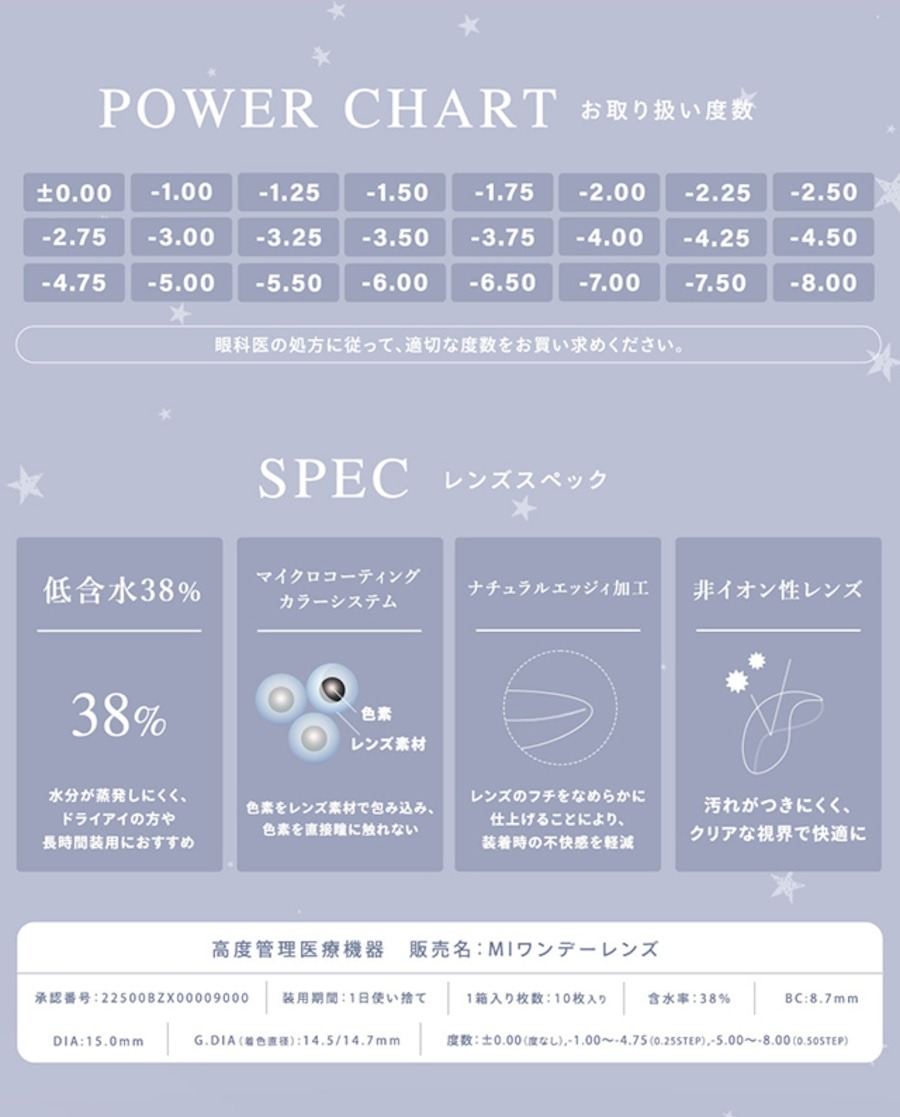 ウユ ワンデー 1箱10枚 15.0mm 度なし 度あり あやちゃん