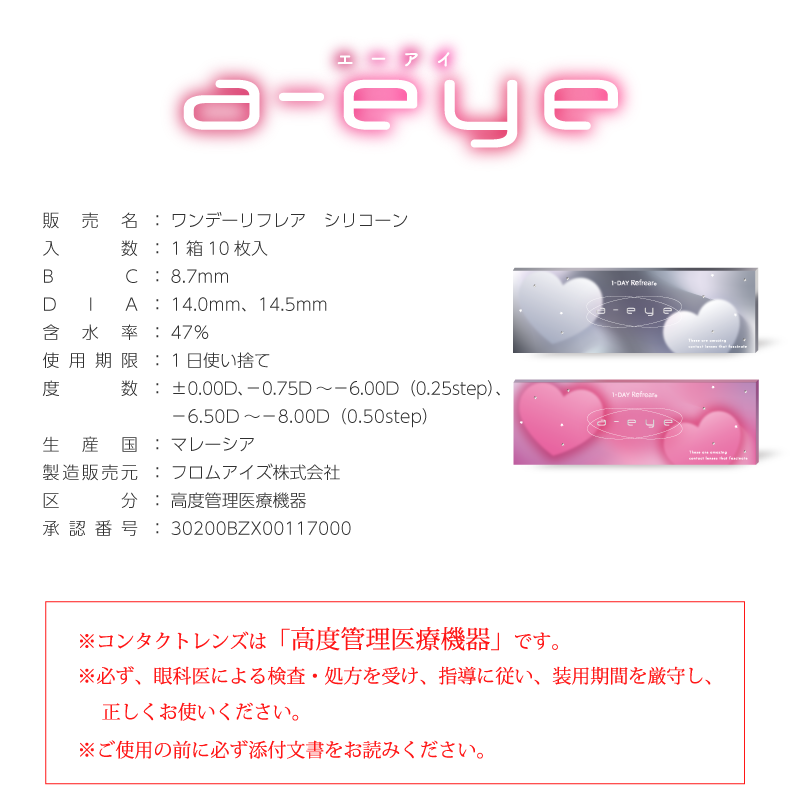 ※装着前には必ず取扱説明書をお読みいただき、注意事項に従ってご使用ください。使用中に違和感を感じた場合は、速やかに使用を中止し、必要に応じて眼科医の診断を受けてください。