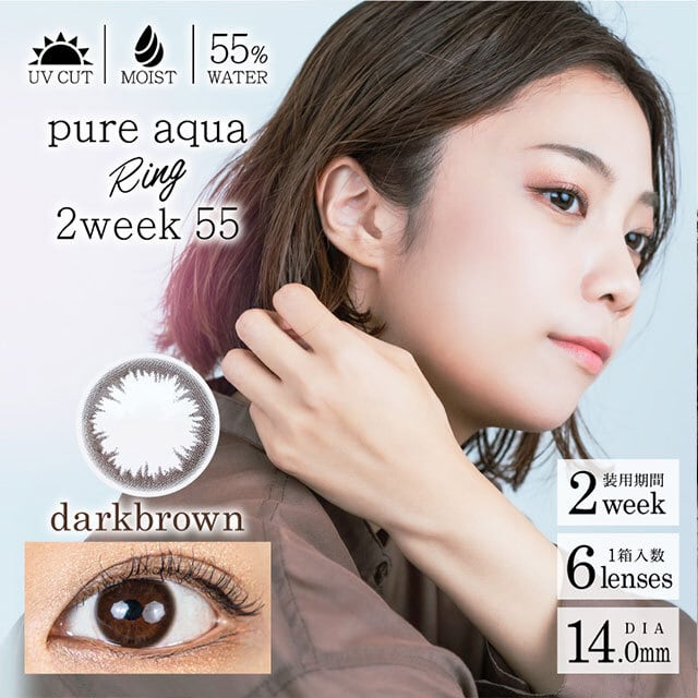 ピュアアクアリング 2week UVM カラコン【ダークブラウン】2WEEK 1箱6枚 14.0mm 度なし 度あり コンタクトレンズ
